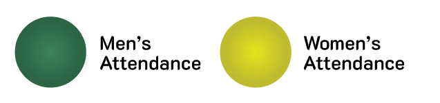 with both men's and women's basketball programs. The green rings show men's attendance,